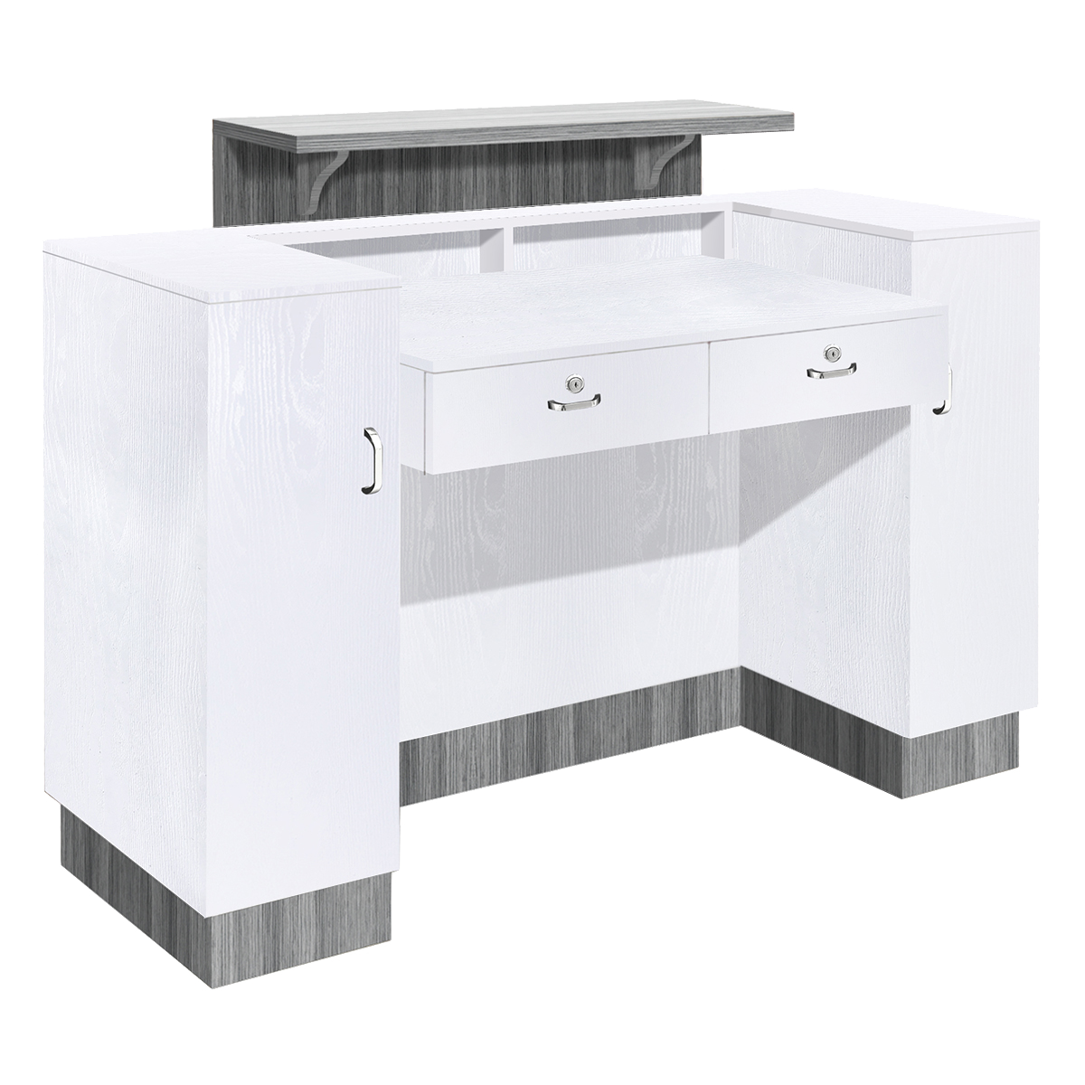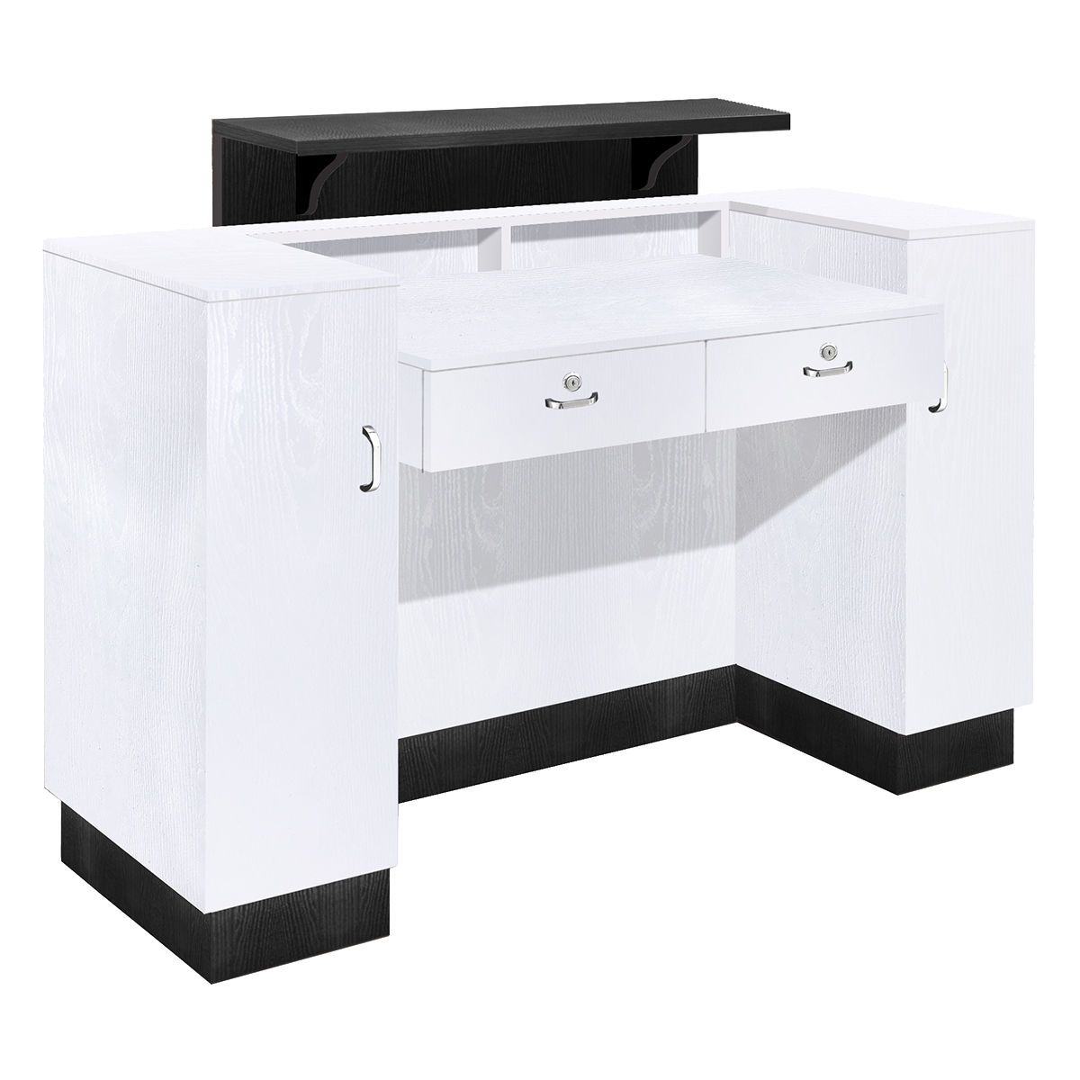 Bàn tiếp tân SC06 là một mẫu bàn tiếp tân hình góc, hiện đại có kích thước vừa phải. Nếu bạn đang tìm kiếm sự tối giản và vẻ đẹp tinh tế để chào đón khách, cùng với chất lượng xây dựng bền bỉ theo thời gian, thì đây là lựa chọn hoàn hảo. Bàn này được làm từ gỗ laminate cao cấp, chống chịu tốt với sự hao mòn.