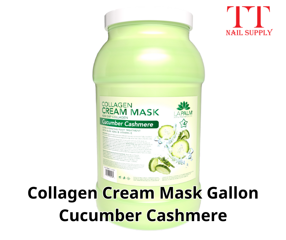 La Palm – Collagen Cream Mask Gallon (Cucumber Cashmere), 4 gal per case là mặt nạ kem collagen chuyên nghiệp giúp dưỡng ẩm sâu, làm mềm da và tăng cường độ đàn hồi. Chiết xuất Dưa leo (Cucumber) kết hợp Cashmere mang đến khả năng làm dịu, cung cấp độ ẩm và nuôi dưỡng làn da mềm mại, lý tưởng cho mọi loại da, đặc biệt là da nhạy cảm và da khô.