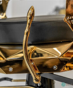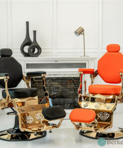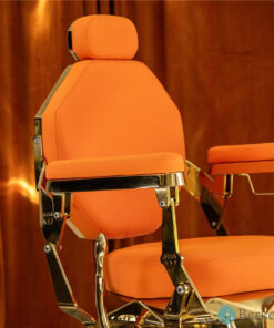 Ghế cắt tóc LEON nổi bật với thiết kế táo bạo, kết hợp lớp bọc màu cam/ đen rực rỡ với lớp hoàn thiện vàng bóng. Hình dáng góc cạnh và họa tiết cắt kim cương mang đến vẻ đẹp hiện đại, biến nó thành tuyên bố cho tiệm cắt tóc hoặc thẩm mỹ viện cao cấp. Ghế có đệm cho tựa lưng, tay vịn và chỗ để chân, cùng tựa đầu điều chỉnh để đảm bảo sự thoải mái tối ưu. Được lắp trên đế chắc chắn với khả năng điều chỉnh độ cao thủy lực mượt mà, ghế này lý tưởng cho những thợ cắt tóc và nhà tạo mẫu ưu tiên cả tính năng và sự thu hút.